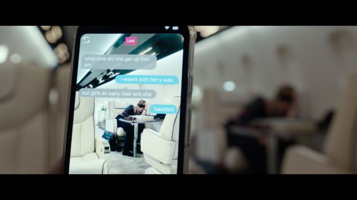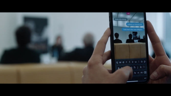 Considering the evidence, Francesca must be filming Tár as she texts with someone else, perhaps Krista? Indeed, during the interview, we glimpse the back of Krista’s head among the audience. Furthermore, after the interview, we see another live video phone chat where the person holding the phone shows how Tár rented renowned Spanish opera singer Plácido Domingo’s room for herself. One of them comments, “she thinks she is being iconic.”