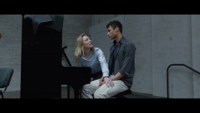 Illuminating how my memory worked to re-imagine the initial scene, I failed to connect Tár’s opening line with Edgar Varése. After Max expresses admiration for Varése, Tár quotes Varése’s impression of jazz music to gloat over Max’s ignorance and hypocrisy. While I remembered all of Tár’s lines re-presented in the video, I failed to recollect the full circumstances because, although her speech is staggeringly composed, her fast pace and academic content purposefully lost me. And so, the re-formatting of the Julliard scene struck me as only mildly tampered with since I remembered condemning Tár’s behavior in the original circumstance but couldn’t recall the full context.