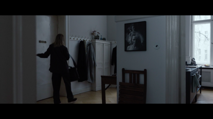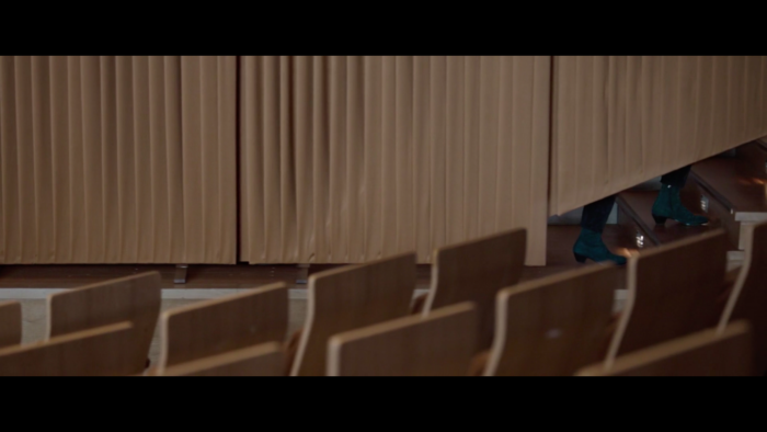 Tár collects other things too. After her Gopnik interview, a young woman approaches Tár, and Tár shows more interest in the woman’s red, designer handbag than the woman herself. (Additionally, when Tár first sees Olga in the bathroom at the Berlin Philharmonic, she takes note of her shoes in order to confirm her suspicion that she is one of the people whose shoes can be seen leaving the auditorium after an otherwise concealed performance. In this instant, Tár’s eyes are drawn to the shoes as much as the person wearing them.) Later, returning home to Sharon, Tár totes the same red bag, which Sharon immediately notices as if intuiting Tár’s unfaithful tendency to omit the truth (which Tár does by evading Sharon’s question about where the bag came from).