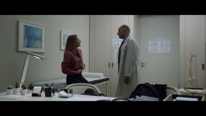 In another instance of homophonic slippage, Tár sees a doctor in Berlin who examines nerve damage she acquires under mysterious circumstances. Hearing the doctor diagnose her with “nostalgia,” the doctor corrects her, restating, “notalgia, without a ‘s.’” No “s” signifies Sharon, referred to as “S,” and implies Tár’s dearth of happy associations with the part of her past shared with Sharon. Nostalgia without a “Sharon” thereby refers to Krista, the primary ghost haunting Tár.