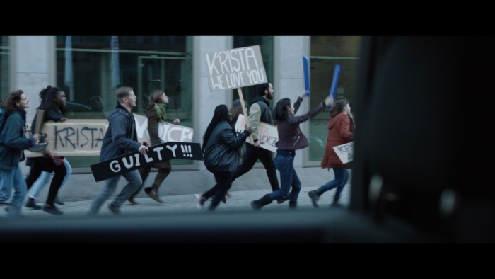 Significantly, Francesca, who usually wears her hair in neat updos, wears her hair down in the same style and cut as Krista in this scene.