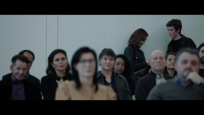 Yet, when we last see these two people texting in the film, at Tár’s book launch, Francesca and Krista are gone from her life. In this scene, Olga, the new cellist in the Berlin Philharmonic (or, Tár’s “fresh meat,” as one Twitter commenter in the film observes), accompanies Tár on her trip. Before the camera cuts to the anonymous person’s phone screen, Tár jealously watches Olga flirting with a young man in the back of the room, typing something on her phone before sharing her screen with him. Therefore, Olga, like Francesca and Krista, is an unlikely culprit for directing the video chat as we see her distracted, uninterested, and in a different part of the audience than the mysterious texter.