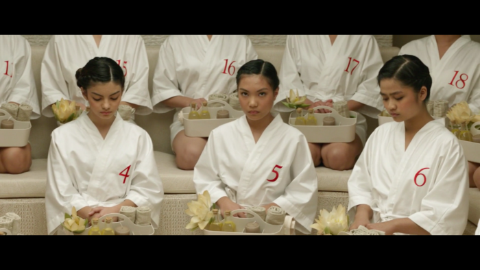 Further considering Tár as a psychological horror, the dream sequences in the film unveil Tár’s inner world or the conscience she may or may not have. These sequences appear from behind a lens immersed in water as if Tár watches from inside an aquarium. This aquarium effect recalls Tár’s visit to the “fishbowl.” At the film’s end, Tár visits a massage parlor in the Philippines, where the receptionist directs her to “the fishbowl”–a room with sex workers in numbered robes. Number five boldly locks eyes with Tár, seeming to choose her. The number five signals both Mahler’s Fifth Symphony (the piece Tár conducts for the Berlin Philharmonic before her dismissal) and the letter “S,” for Sharon, Tár’s wife, sometimes referred to as “S.” As Tár interprets Mahler’s Fifth as a symphony about love and marriage, the invocation of these ideas at this moment horrifyingly underlines their nonappearance. Instead, a new ghost from the past, beyond Krista, appears to haunt Tár.